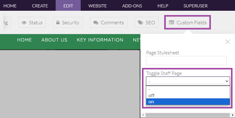 This feature is easy to switch on for your pages but can be implemented in a number of different ways. Here are some examples of where to find the toggle to make your page into a Custom Staff Page.