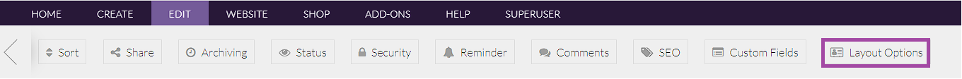 - Where available, you will find the Page Layout option on the page Edit toolbar.