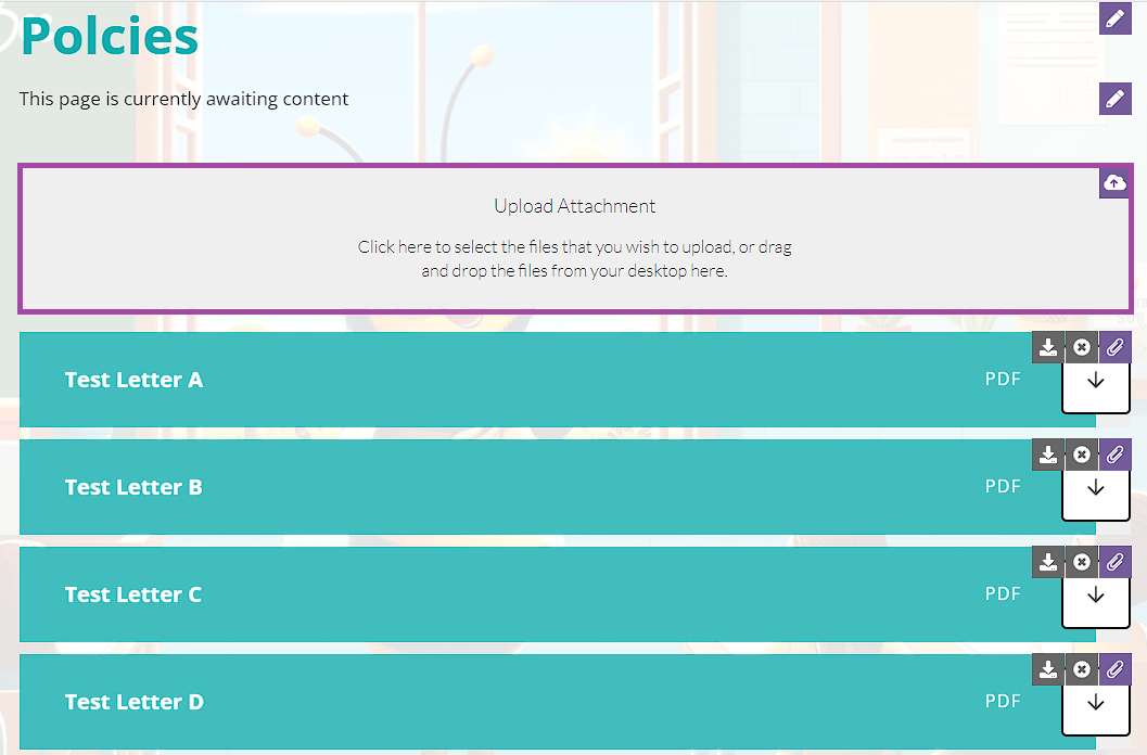 - Scroll to the bottom of your page until you find the Upload Attachment block.